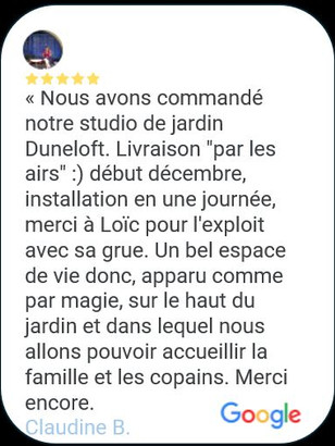 "Nous souhaitions installer un studio dans le jardin de notre pavillon pour le proposer en location saisonnière. L'installation s'est déroulée en une heure et le studio s'intègre parfaitement dans son nouvel environnement. Il va aussi nous servir pour accueillir nos proches.